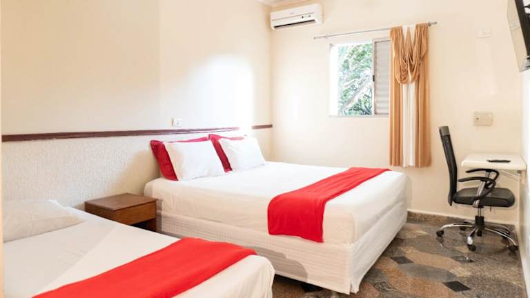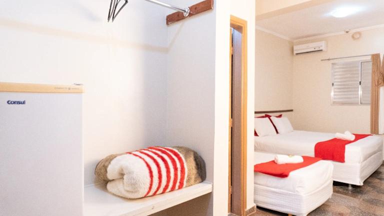 Die Zimmer im Hotel Estancia Santa Amélia sind mit einem Schreibtisch, einem Flachbild-TV, einem eigenen Badezimmer sowie Bettwäsche und Handtüchern ausgestattet. Alle Wohneinheiten verfügen über einen Kleiderschrank.