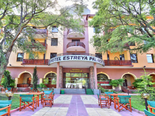 Das Hotel Estreya Palace Residence verfügt über eine Bar, in der Sie erfrischende Getränke genießen können. Es werden verschiedene Verpflegungsleistungen angeboten, darunter Halbpension und All-Inclusive. All-Inclusive-Gäste können sich auf eine Auswahl an Snacks sowie alkoholische und alkoholfreie Getränke freuen. Das Frühstück, Mittag- und Abendessen werden in Form eines leckeren und reichhaltigen Buffets serviert.