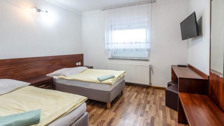 Die Zimmer im Noclegi Europa sind klassisch eingerichtet und in hellen Farben gehalten. Jedes Zimmer verfügt über einen TV und bietet Ihnen somit zusätzlichen Komfort während Ihres Aufenthalts. Bettwäsche wird gestellt, um Ihnen einen angenehmen Schlaf zu ermöglichen.