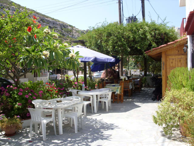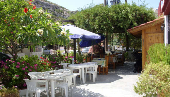 Das Hotel liegt in einer kleinen Seitengasse in Matala an der Südküste und ist bei vielen Stammgästen beliebt. Der Strand von Matala ist nur einen kurzen Spaziergang entfernt und bietet Liegen und Sonnenschirme gegen Gebühr.