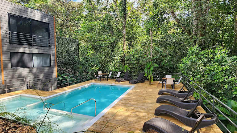 Das Hotel Evasión befindet sich in Ojochal, 2 km von der Playa Tortuga entfernt, und ist gut erreichbar über die Avenida Ojochal. In der Nähe finden sich Sehenswürdigkeiten wie das Alturas Wildlife Sanctuary und die Nauyaca-Wasserfälle. Der Flughafen La Managua ist 74 km entfernt.