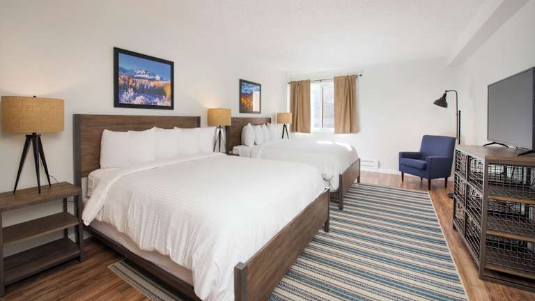 Die Zimmer sind modern eingerichtet und bieten verschiedene Optionen, darunter Mountain View Zimmer mit 2 Queen Size Betten und Valley View Zimmer mit 2 Queen Size oder 1 King Size Bett. Jedes Zimmer ist ca. 33 m² groß und ausgestattet mit einem Flachbild-TV, Kühlschrank, Kaffee-/Teezubereiter und Badezimmer mit Dusche oder Badewanne. WLAN ist in den Zimmern teilweise kostenfrei.