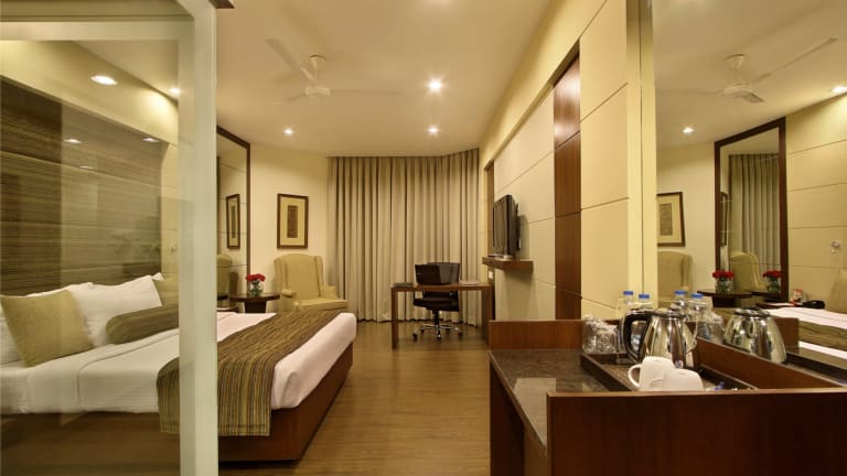 Die klimatisierten Zimmer im Express Residency Vadodara sind modern und komfortabel eingerichtet. Jedes Zimmer verfügt über einen Flachbild-Sat-TV, einen Wasserkocher und einen gemütlichen Sitzbereich. Das private Badezimmer ist mit einer Dusche und einem WC ausgestattet.