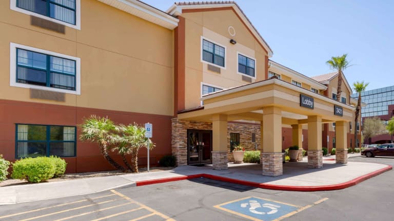 Das Extended Stay America - Phoenix - Airport in Phoenix ist ideal für längere Aufenthalte geeignet. Mit voll ausgestatteten Küchen in allen Zimmern und kostenfreiem WLAN bietet das Hotel alle Annehmlichkeiten, die Sie für einen komfortablen Aufenthalt benötigen. Die 24-Stunden-Rezeption und die kostenfreien Parkplätze tragen ebenfalls zu einem angenehmen Aufenthalt bei. In der Umgebung befinden sich verschiedene Sehenswürdigkeiten wie das Wild Horse Pass Casino, das Casino Arizona und der Tempe Town Lake.