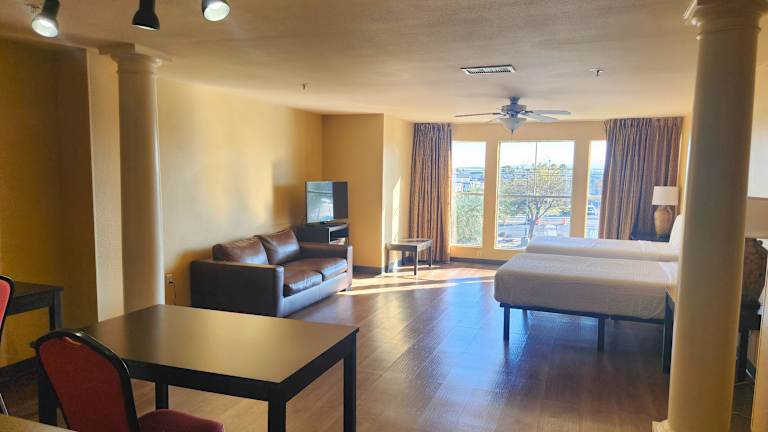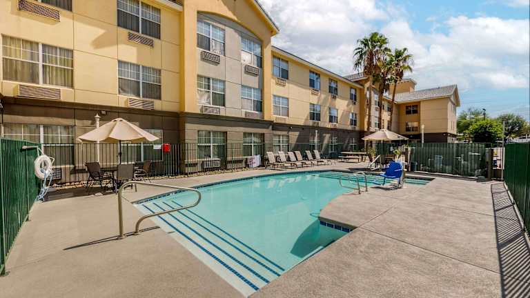 Das Extended Stay America - Las Vegas - East Flamingo ist ein ideales Hotel für längere Aufenthalte in Las Vegas. Mit voll ausgestatteten Küchen in jedem Zimmer bietet es seinen Gästen die Möglichkeit, selbst zu kochen und sich wie zu Hause zu fühlen. Das kostenfreie WLAN, das kostenlose Frühstück zum Mitnehmen und die rund um die Uhr besetzte Rezeption sorgen für zusätzlichen Komfort. Die Nähe zu Sehenswürdigkeiten wie dem Las Vegas Strip, dem Las Vegas Convention Center und dem Desert Springs Hospital macht das Hotel zu einer praktischen Wahl für Reisende.