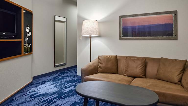 Die Zimmer im Fairfield Inn & Suites Burlington sind traditionell eingerichtet und bieten eine gemütliche Atmosphäre für einen erholsamen Aufenthalt. Jedes Zimmer verfügt über Annehmlichkeiten wie Kabel-TV, eine Kaffeemaschine und einen Schreibtisch. Einige Zimmer sind rollstuhlgerecht und verfügen über ein barrierefreies Badezimmer. Für zusätzlichen Komfort können Gäste den Zimmerservice des Bob's Burgers and Brew in Anspruch nehmen.