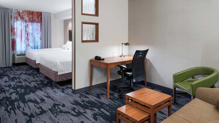 Die klimatisierten Zimmer im Fairfield Inn & Suites Kansas City Overland Park sind mit modernen Annehmlichkeiten ausgestattet, um Ihren Aufenthalt so angenehm wie möglich zu gestalten. Neben kostenfreiem WLAN und einem Flachbild-Kabel-TV bietet jedes Zimmer Tee- und Kaffeezubehör. Ein Schreibtisch und ein Bügeleisen/-brett sind ebenfalls vorhanden, um Ihren Komfort zu gewährleisten.