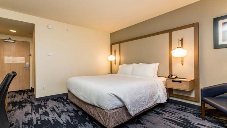 Die Zimmer im Fairfield Inn St. George sind geräumig und bieten einen komfortablen Sitzbereich sowie einen gut beleuchteten Schreibtisch. Sie verfügen über Kabel-TV, eine Klimaanlage und kostenloses WLAN. Die Zimmer sind perfekt ausgestattet, um den Gästen einen angenehmen Aufenthalt zu bieten.