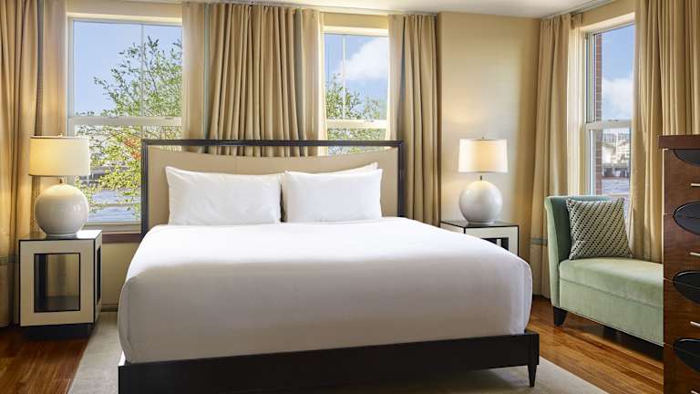 Das Hotel Fairmont Battery Wharf Boston befindet sich im Stadtteil North End im Hafengebiet des Boston Harbor. Es ist von Wohnhäusern, Bars, Restaurants, Parks und Galerien umgeben. Die Lage ermöglicht es den Gästen, die Sehenswürdigkeiten wie den Freedom Trail, den North End, den Quincy Market, Charlestown, den Rose Kennedy Greenway und das Institut für Zeitgenössische Kunst in der Nähe zu erkunden. Der New England Aquarium ist nur ca. 2 Minuten entfernt, während der Bunker Hill Monument in etwa 5 Minuten erreicht werden kann. Weitere Entfernungen umfassen eine 8-minütige Fahrt zum Prudential Center und etwa 15 Minuten nach Cambridge. Der internationale Flughafen Logan liegt ca. 5 km entfernt.