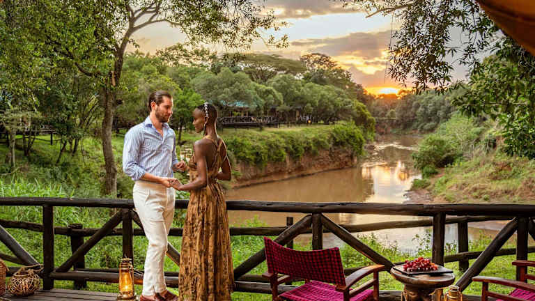 Das Fairmont Mara Safari Club ist ein einzigartiges Hotel, das Ihnen ein authentisches Safari-Erlebnis bietet. Die Zelte mit ihrer eigenen Veranda bieten einen atemberaubenden Blick auf den Fluss Mara und die umliegende Tierwelt. Genießen Sie Pirschfahrten, entspannen Sie am beheizten Außenpool und lassen Sie sich in den Massage-Zelten verwöhnen. Das Restaurant serviert köstliche afrikanische Gerichte und bietet ein einmaliges Ambiente oberhalb des Flusses. Erkunden Sie das benachbarte Naturschutzgebiet Masai Mara und erleben Sie unvergessliche Safaris und Ballonfahrten.
