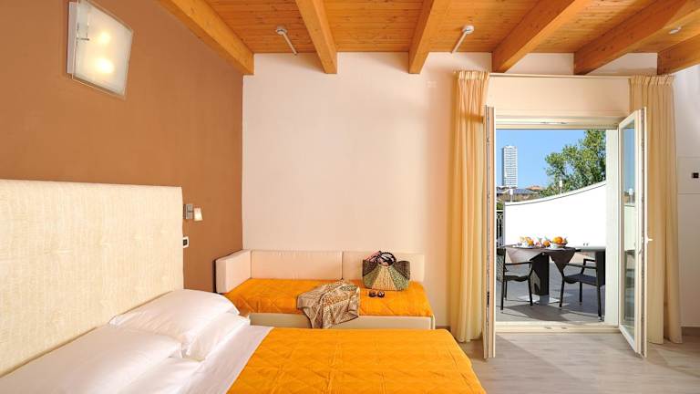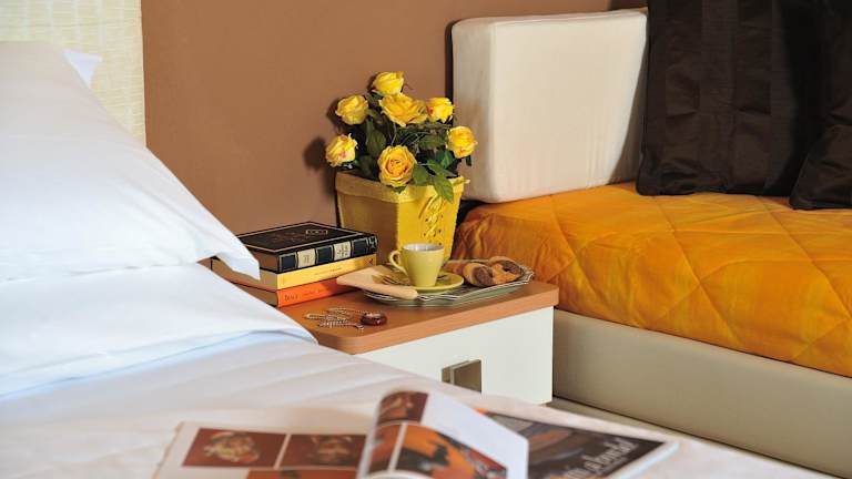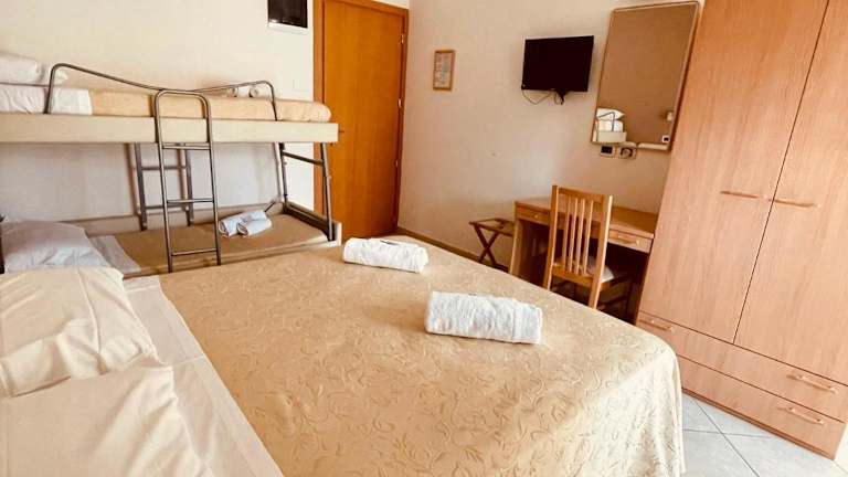 Die Zimmer im Hotel Favorita sind modern und farbenfroh eingerichtet. Sie bieten den Gästen Komfort und eine angenehme Atmosphäre. Zur Ausstattung gehören eine Klimaanlage, ein TV und kostenloses WLAN. Jedes Zimmer verfügt über ein eigenes Bad mit Dusche, WC und einem Haartrockner.
