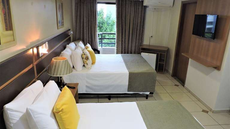 Das Hotel Ferraz in Pouso Alegre ist eine komfortable Unterkunft mit einer Gemeinschaftslounge und einem Restaurant. Die 24-Stunden-Rezeption, kostenfreies WLAN und Privatparkplätze sorgen für Bequemlichkeit und Komfort während Ihres Aufenthalts. Die Zimmer sind mit modernen Annehmlichkeiten wie einem Flachbild-Kabel-TV, einer Minibar und einem eigenen Bad ausgestattet. Ein Balkon in jedem Zimmer bietet Ihnen die Möglichkeit, die frische Luft zu genießen. Jeden Morgen erwartet Sie ein köstliches Frühstücksbuffet. Entdecken Sie die umliegende Region, wie zum Beispiel Gonçalves, das nur 48 km entfernt liegt.