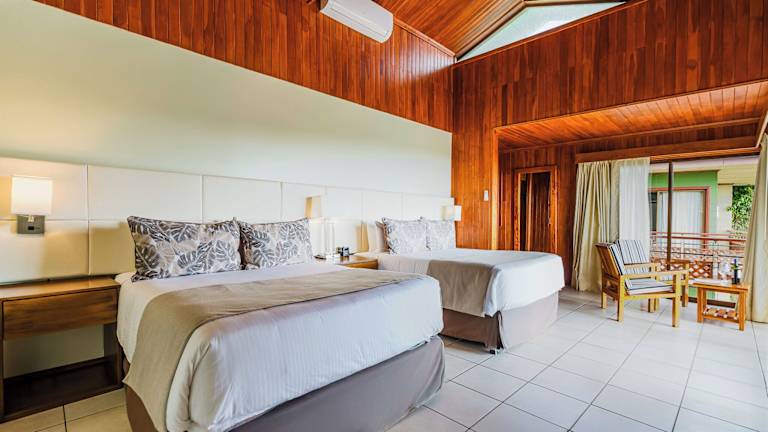 Das Hotel verfügt über insgesamt 40 Zimmer, die sich sowohl in einem 2-stöckigen Haupthaus als auch in 5 Nebengebäuden befinden. Die Zimmer sind komfortabel eingerichtet und bieten Annehmlichkeiten wie einen Balkon oder eine Terrasse, ein Doppelbett, einen Schreibtisch, eine Tee-/Kaffeemaschine und einen Fernseher mit Kabelempfang. Rollstuhlgerechte Zimmer mit barrierefreiem Bad sind ebenfalls verfügbar.