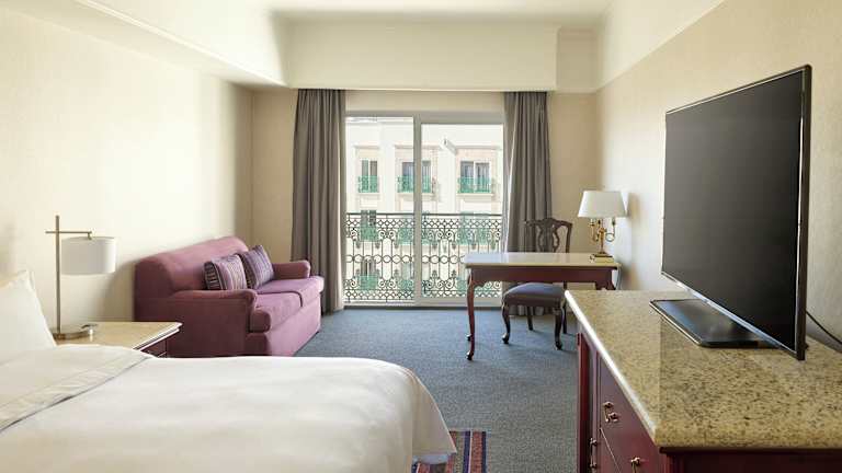 Die Zimmer sind geräumig und klimatisiert. Zur Ausstattung gehören Plasma-Sat-TV, kostenloses WLAN, Tee- und Kaffeezubehör, ein Balkon sowie eine Minibar. Des Weiteren sind ein Safe, ein Schreibtisch, ein Bügelset und eine Hosenpresse vorhanden. Die Badezimmer verfügen über einen Haartrockner und Kosmetikartikel. Es stehen auch rollstuhlgerechte Zimmer und Familienzimmer zur Verfügung.