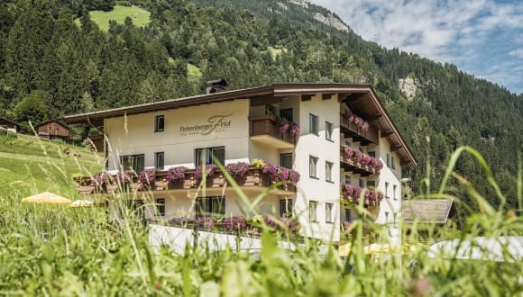 Unser gemütliches *** Hotel Finkenbergerhof befindet sich im sportlichen Erholungsdorf Finkenberg, dem Ski-, Wander- und Bikeparadies des hinteren Zillertales in sonniger und zentraler Lage. Nahe dem Ganzjahresskigebiet Hintertuxer Gletscher. Eine Skibushaltestelle befindet sich direkt beim Hotel und befördert die Gäste im 15 Minuten Takt zur Finkenberger Almbahn, direkter Einstieg in die Ski- und Gletscherwelt 3000 Nur wenige Gehminuten trennen Sie von der Haltestelle für den Wanderbus zum absoluten Urlaubsvergnügen. An den geführten Wanderungen des Hochgebirgs-Naturpark Zillertaler Alpen dürfen unsere Hotelgäste auf Voranmeldung gratis daran teilnehmen. Freier Eintritt mit Gästekarte in unser feines Freischwimmbad in Finkenberg! Heimelige Atmosphäre genießen Sie in unseren neu renovierten Wohlfühlzimmer. Erholen und entspannen Sie sich in unserem einladenden Wellnessbereich. Auch der kulinarische Genuss wird bei uns groß geschrieben, der Hausherr persönlich verwöhnt Sie mit herzhaften Schmankerln aus seiner Gourmet Küche. Genießen Sie unsere hauseigenen Spezialitäten auf unserer Panoramaterrasse bei einem atemberaubenden Ausblick auf die Zillertaler Bergwelt! Wir freuen uns auf Sie - Ihre Familie Stefan und Eva Eberl - Hotel Finkenbergerhof