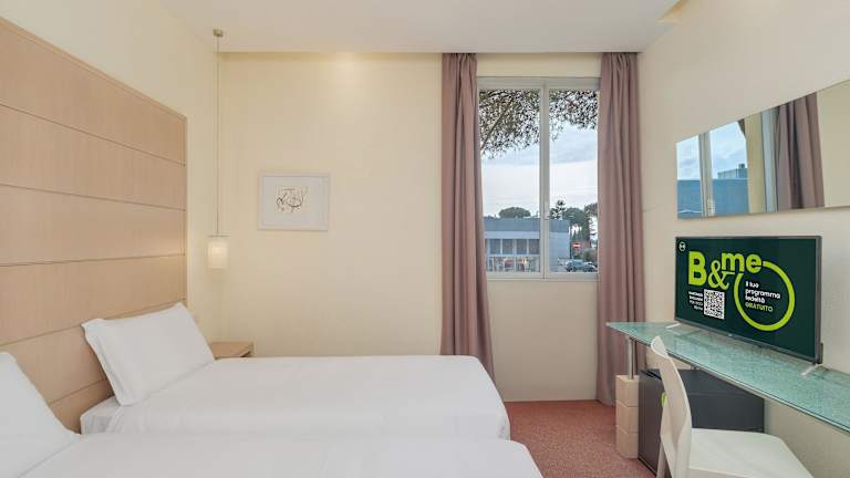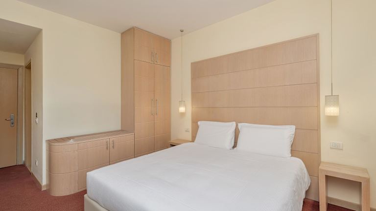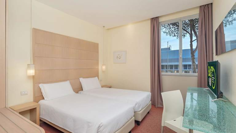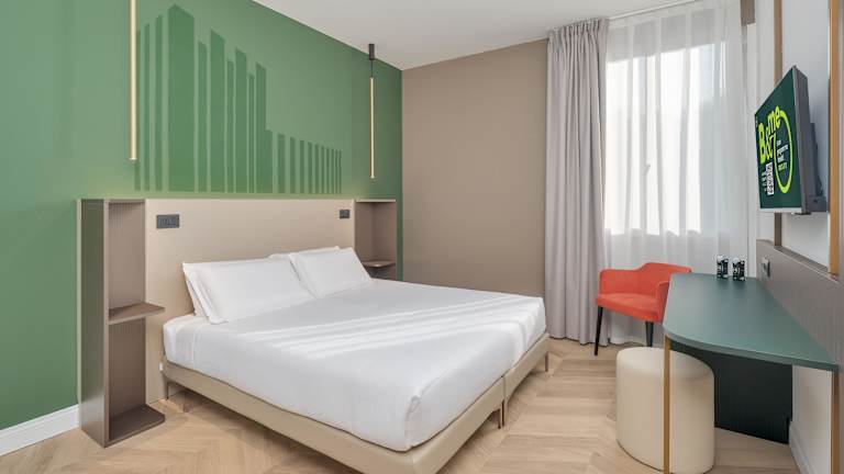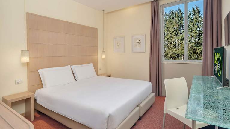 Die Zimmer sind hell eingerichtet und verfügen über ein Doppelbett, eine Minibar, einen Schreibtisch sowie einen 22-Zoll-LCD-TV mit Sat- und Pay-per-View-Kanälen. Ein Kühlschrank und eine Hosenpresse sind ebenfalls vorhanden. Die Badezimmer sind mit einer Dusche, Badewanne und Bidet ausgestattet. Es gibt auch rollstuhlgerechte Zimmer und Nichtraucheroptionen.
