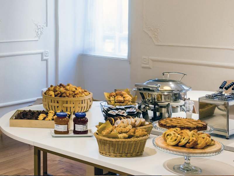 Die gastronomischen Einrichtungen umfassen ein klimatisiertes Restaurant, ein Café und eine Bar. Gästen wird ein reichhaltiges Frühstücksbuffet sowie Halbpension und Vollpension angeboten. Diätgerichte und spezielle Mahlzeiten werden auf Anfrage zubereitet. Zudem serviert das Restaurant italienische Küche und Pizza, teilweise auch am Pool.
