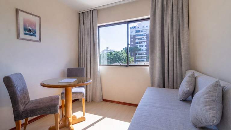 Das Hotel Flat Petras Residence befindet sich in einer ruhigen Gegend im Zentrum von Curitiba und ist nur etwa 2 Minuten vom Damm entfernt. Der Park Barigui ist in ca. 3 km erreichbar, während das Opernhaus 'Ópera de Arame' nach ca. 4,4 km zu erreichen ist. Das Stadtzentrum ist in nur 5 Fahrminuten zu erreichen.