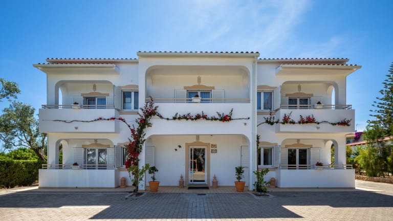 Die Apartamentos Flôr da Laranja in Albufeira bieten geräumige Apartments und Studios zur Selbstverpflegung in einer ruhigen natürlichen Umgebung. Entspannen Sie am Pool oder erkunden Sie die Umgebung, bevor Sie auf Ihrem eigenen Balkon den Tag ausklingen lassen. Das Hotel bietet auch praktische Annehmlichkeiten wie Waschmaschinen und überdachte Terrassen.