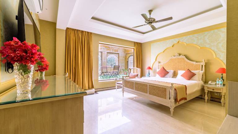 Die Zimmer im Hotel Fort Rajwada sind exquisit gestaltet und verfügen über einen Schreibtisch, einen Wasserkocher und einen Flachbild-Sat-TV. Jedes Zimmer hat ein eigenes Bad mit einer Warm-/Kaltwasserdusche und kostenfreien Pflegeprodukten. Ein Wäscheservice und eine chemische Reinigung sind ebenfalls verfügbar.