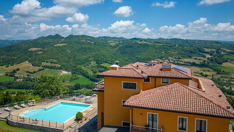 Das Hotel Fortebraccio befindet sich in der charmanten Stadt Montone und bietet einen atemberaubenden Blick auf die umliegende Landschaft. Der Flughafen Perugia - Sant Egidio Apt ist der nächstgelegene Flughafen. Die Autobahn E45 ist nur wenige Kilometer entfernt und bietet eine gute Anbindung an den Lago Trasimeno sowie die Städte Assisi, Perugia und Arezzo.