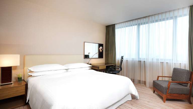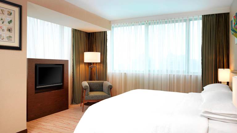 Die Zimmer im Four Points by Sheraton Shanghai, Daning sind gemütlich und modern eingerichtet. Sie verfügen über helle Holzmöbel und bieten Annehmlichkeiten wie einen Flachbild-Kabel-TV, eine Minibar und ein eigenes Badezimmer mit einer Badewanne.