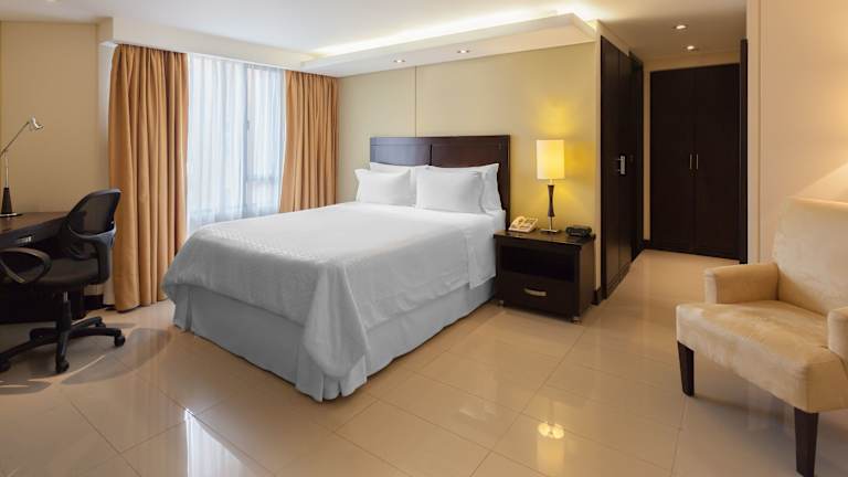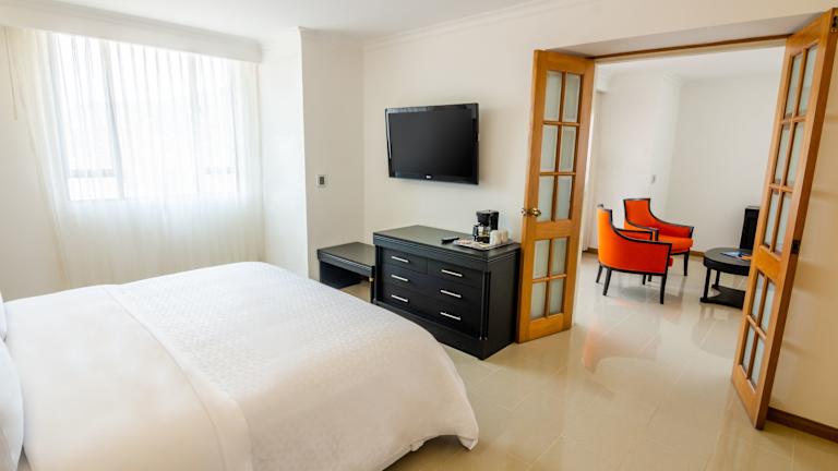 Die Zimmer im Sonesta Hotel Cali sind elegant gestaltet und bieten eine angenehme Atmosphäre. Die Zimmer verfügen über eine moderne Beleuchtung und eine helle cremefarbene Einrichtung. Zur Ausstattung gehören LCD- und Kabel-TV, Klimaanlage und eine Kaffeemaschine.