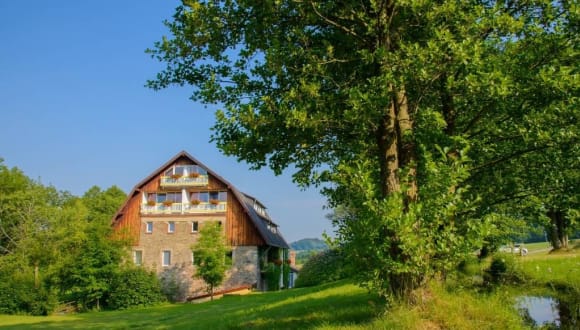 Unser Haus ist eine ehemalige Glaschleiferei und wurde mit viel Liebe zum Detail in ein Wohlfühl-Hotel verwandelt. Sie wohnen in geräumigen, hübschen Studios (40-60 m²), meist mit Balkon. In allen Bädern finden Sie selbstverständlich einen Haarfön, so dass Sie Ihren ruhig zuhause lassen können. Jedes Studio hat seinen eigenen Charme und verfügt über ein oder zwei Schlafzimmer sowie ein Wohnzimmer. Ein sehr reichhaltiges Frühstücksbuffet sorgt für gute Laune am Morgen. Tagsüber können Sie tennisspielen (3 hauseigene Sandplätze), herrliche Wanderungen unternehmen (bestens ausgeschilderte Wanderwege in unmittelbarer Umgebung) oder Sie golfen in wunderschöner Landschaft (Golfplatz Furth i. Wald - nur 7 Autominuten entfernt). Gerne informieren wir Sie auch über spezielle Golfkurse (Platzreife, Verbesserung des Handicaps). Wir sind Partnerhotel des Golfclubs und bieten Ihnen eine reduzierte Greenfee an. Weitere Golfplätze in unserer Nähe: Wutzschleife (20 Autominuten), Oberpfälzer Wald (30 Min.) Straubing Stadt/Land und Gäuboden (50 Min.). Nachmittags verwöhnen wir Sie mit hausgemachten Kuchen und Kaffee oder Brotzeiten auf unserer Terrasse oder im Cafe. Entspannen können Sie bestens im Saunabereich oder auf unserer Liegewiese. Lassen Sie den Tag an unserer Bar ausklingen. In Waldmünchen finden Sie außerdem eine Reitschule, Badesee, Erlebnisbad "Aquafit", Klettergarten, Verleih von eBikes und vieles mehr. Festspielzeit ist im Juli/August (Trenckfestspiel Waldmünchen, Drachenstich Furth i. Wald, Kötztinger Waldfestspiele usw.)