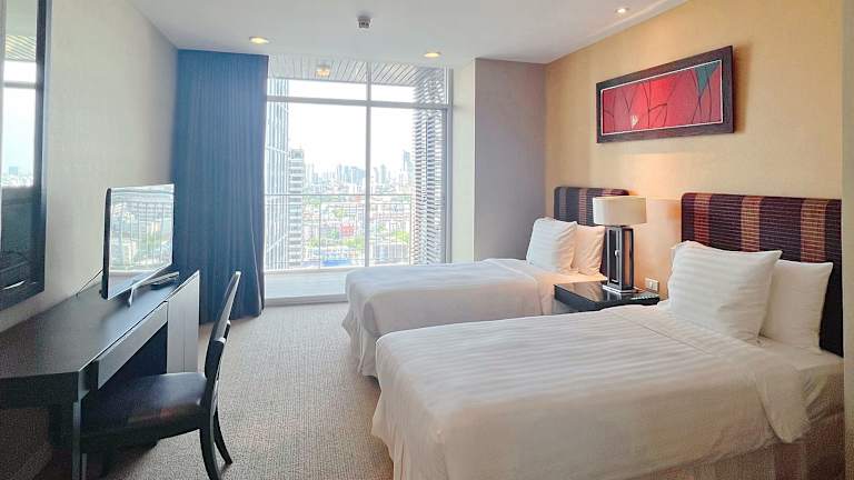 Das Urbana Sathorn, Bangkok bietet seinen Gästen luxuriöse Suiten mit einer Küchenzeile und einer atemberaubenden Aussicht auf Bangkok. Mit seiner günstigen Lage in der Nähe der MRT-Bahnhöfe Silom und Lumpini ist das Hotel der ideale Ausgangspunkt, um die Stadt zu erkunden. Entspannen Sie sich im Wellnessbereich, schwimmen Sie im Infinity-Pool auf dem Dach oder spielen Sie Basketball auf den hoteleigenen Plätzen. Das Urbana Sathorn, Bangkok bietet seinen Gästen eine erstklassige Unterkunft und eine Vielzahl von Annehmlichkeiten.