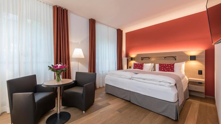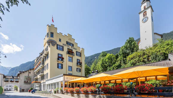 Das Hotel Fravi in Andeer ist ein historisches Gebäude aus dem Jahr 1828, das seinen Gästen einen direkten Zugang zum öffentlichen Mineralbad von Andeer bietet. Hier können Sie sich in den Innen- und Außenpools entspannen und im Saunabereich zur Ruhe kommen. Das Restaurant des Hotels verwöhnt Sie mit Schweizer und internationaler Küche, die Sie auf der Gartenterrasse genießen können. Die modern eingerichteten Zimmer bieten einen herrlichen Blick auf die Berge und sind mit Flachbild-Sat-TV, Safe und Holzböden ausgestattet. Im eigenen Bad finden Sie einen Haartrockner und einen Bademantel vor. Das WLAN nutzen Sie in den öffentlichen Bereichen kostenfrei. In der Sommersaison können Sie auf den hoteleigenen Tennisplätzen aktiv bleiben. Kostenfreie Privatparkplätze stehen Ihnen am Hotel zur Verfügung. Die Bushaltestelle Heilbad Andeer befindet sich direkt vor dem Haus und das Skigebiet Splügen-Tambo ist 12 km entfernt.