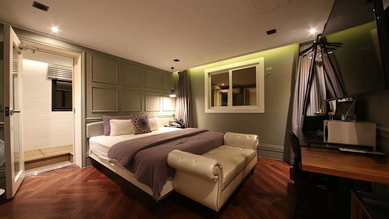 Das Hotel Frenchcode in Busan bietet komfortable und klimatisierte Zimmer in günstiger Lage. Die Unterkunft ist gut angebunden an verschiedene Sehenswürdigkeiten und Verkehrsanbindungen in der Stadt. Die Zimmer sind modern eingerichtet und verfügen über Annehmlichkeiten wie einen Schreibtisch, eine Kaffeemaschine, einen Kühlschrank und einen Flachbild-TV. Das freundliche Personal an der 24-Stunden-Rezeption spricht Englisch und Koreanisch und steht Ihnen jederzeit zur Verfügung.
