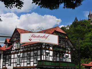 In der herrlichen Harzlandschaft inmitten der historischen Fachwerkstadt Wernigerode, befindet sich das Hotel Fürstenhof in einem wunderschönen Fachwerkhaus aus dem 17. Jahrhundert. Es erwartet Sie eine schöne Aussicht auf das Schloss Wernigerode und das Mühlental. Die 22 komfortabel ausgestatteten Nichtraucherzimmer und 2 Apartments verfügen über moderne Annehmlichkeiten wie W-LAN und Flachbild-TV, eine kostenpflichtige Minibar und ein helles Bad mit kostenfreien Pflegeprodukten. Freuen Sie sich am Ende eines erlebnisreichen Tages auf unseren modernen Wellnessbereich mit Finnischer Sauna und Dampfbad. Der originell gestaltete Frühstücksraum lädt zum Entspannen ein, hier erwartet Sie ein abwechslungsreiches Frühstücksbuffett. Private Parkplätze stehen Ihnen kostenfrei direkt am Hotel zur Verfügung. Der Fürstenhof ist ein idealer Ausgangspunkt für Wanderungen und Radtouren durch den sagenumwobenen Harz. Erkunden Sie Natur und Kultur mit den Dampfzügen der Harzer Schmalspurbahnen. In nur 90 Minuten erreichen Sie den höchsten Gipfel im Norden, den Brocken. Zu weiteren beliebten Aktivitäten in der Umgebung von Wernigerode gehören Skifahren und Rodeln im Oberharz oder der Besuch der Rosstrappe in Thale und eine Fahrt mit der hochmodernen Seilbahn mit Glasboden. Das Schloss Wernigerode ist nur 20 Gehminuten entfernt. Den historischen Marktplatz mit seinem berühmten Rathaus aus dem 15. Jahrhundert erreichen Sie in 5 Gehminuten. Der Fürstenhof Wernigerode heißt seine Gäste seit dem 23. April 2009 herzlich willkommen. Eine Renovierung der Zimmer fand im Januar 2017 statt. Die Urlauber haben diesem Hotel das Gütesiegel HolidayCheck Quality Selection verliehen.