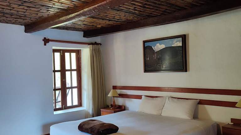 Die Zimmer sind komfortabel eingerichtet und verfügen über große Fenster mit Blick auf die Berge. Zur Ausstattung gehören ein Telefon, ein Safe und ein eigenes Bad. Alle Zimmer sind mit Parkett ausgelegt.