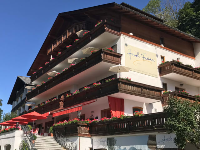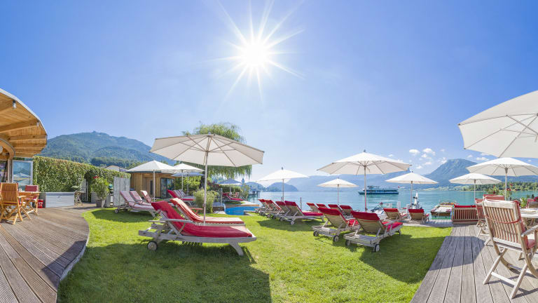 4 Gehminuten zum Hotelstrand LAKESIDE und ins Ortszentrum - das HOTEL FURIAN**** befindet sich im Grüngürtel von St. Wolfgang in der ruhigen Sternallee !