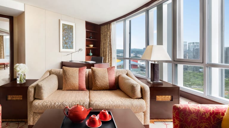 Das Hotel befindet sich im Geschäftsviertel des Futian District in Shenzhen, nur wenige Schritte vom Shenzhen Convention & Exhibition Centre und dem Shenzhen Civic Centre entfernt. Der nächste Flughafen ist Shenzhen Bao’an International Airport, ca. 30 Minuten mit dem Auto entfernt. Die Metro-Station ist in 2 Minuten zu Fuß erreichbar und die Futian Station ist nur 5 Gehminuten entfernt. Außerdem ist die Hong Kong West Kowloon Station mit dem Hochgeschwindigkeitszug in 14 Minuten erreichbar. Die Entfernung zum Stadtzentrum beträgt etwa 300 m.