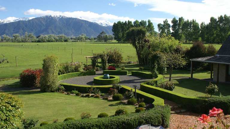 Die Fyffe Country Lodge in Kaikoura bietet eine luxuriöse Unterkunft mit einem stilvollen Boutique-Dekor und handgefertigten Möbeln. Mit kostenfreiem WLAN, kostenlosem Fahrradverleih und kostenfreiem kontinentalem Frühstück ist diese Lodge der ideale Ort, um Ihren Aufenthalt zu genießen. Von der Lodge aus haben Sie einen atemberaubenden Blick auf den Mount Fyffe und die Kaikoura Ranges. Die Zimmer sind gemütlich eingerichtet und bieten einen schönen Blick auf die Berge, den Innenhof oder den Garten. Entspannen Sie im wunderschön angelegten Garten oder genießen Sie Aktivitäten wie Angeln, Walbeobachtung und Golf. Das Fyffe Restaurant bietet saisonale Gerichte mit Meeresfrüchten und sorgt für kulinarische Höhepunkte. Die Lodge ist nur wenige Minuten vom Zentrum von Kaikoura entfernt und bietet Privatsphäre und Exklusivität.