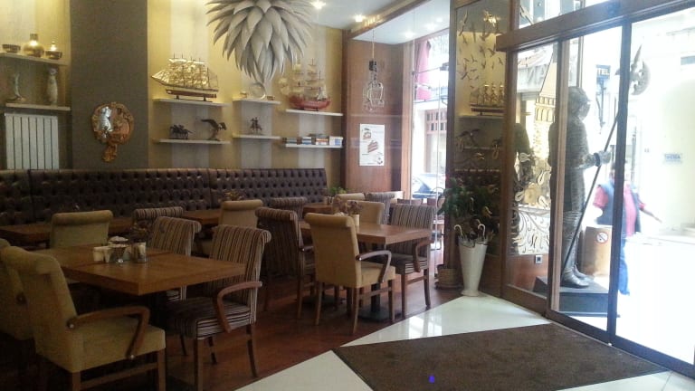 Das Galata Palace Hotel bietet ein À-la-carte-Restaurant, das türkische Küche in einem eleganten Essbereich serviert. Morgens erwartet die Gäste ein offenes Frühstücksbuffet, um gestärkt in den Tag zu starten. In der Nähe des Hotels gibt es auch viele Restaurants und Bars, die zu einem Besuch einladen.