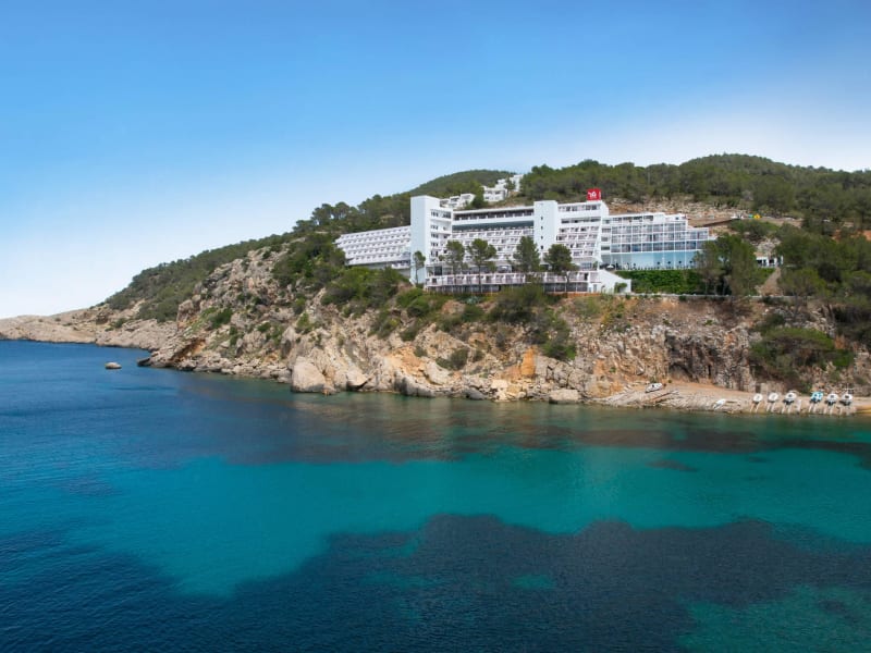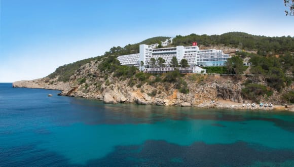 Das Galeón Ibiza Hotel ist ein 4-Sterne-Resort in Playa de San Miguel, Ibiza, und bietet Übernachtungsmöglichkeiten mit all-inclusive-Service und Halbpension an. Die komfortable Unterbringung und die atemberaubenden Sonnenuntergänge in einem Hotel, das Ihnen den Eindruck vermittelt auf dem Meer zu sein und in dem Ihnen das Mittelmeer zu Füßen liegt. Das Galeón Ibiza Hotel liegt am Rand eines Hangs in Port de Sant Miguel in einer fantastischen Lage inmitten eines ruhigen Teils der Insel, der mit Pinienbäumen bewachsen ist und Ihnen alle möglichen blauen Schattierungen biete. Die perfekte Lage sowohl für Familien wie auch Paare. Das Hotel Galeón Ibiza bietet 182 helle und geräumige, nach außen gelegene Räume mit Balkonen oder Terrassen mit wunderbarem Meerblick. Das Hotel liegt 20 km von Ibiza-Stadt entfernt, jedoch in der Nähe von einigen der hübschesten Buchten der Insel. Cala Benirrás ist nur einen Steinwurf entfernt, hier kann man malerische Sonnenuntergänge in Kombination mit Trommelrhythmen genießen. Andere Buchten in der Gegend sind unter anderem Cala Xarraca, S’Illot des Renclí und Cala Xuclá, die alle in der Nähe des Hotels liegen.