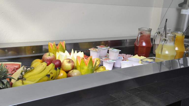Das Hotel bietet ein köstliches Frühstücksbuffet, das jeden Morgen im Frühstücksraum serviert wird. Das Buffet umfasst eine Auswahl an frischem Obst, Brot und Aufschnitt sowie warme und kalte Getränke. Genießen Sie ein reichhaltiges und schmackhaftes Frühstück, um gestärkt in den Tag zu starten.
