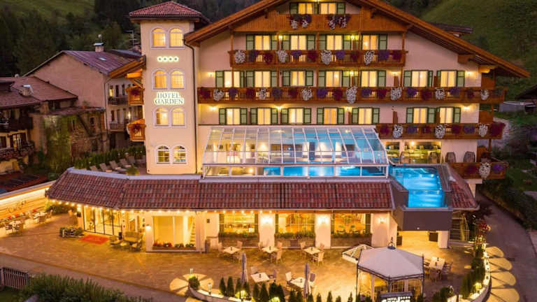 Das Hotel Garden ist der ideale Ausgangspunkt für Aktivitäten im Freien in den Dolomiten. Das traditionell alpine Hotel bietet komfortable Zimmer, einen Innenpool, ein Wellnesszentrum und eine ausgezeichnete Küche. Genießen Sie den Blick auf die Berge und entspannen Sie sich nach einem erlebnisreichen Tag in der Natur.