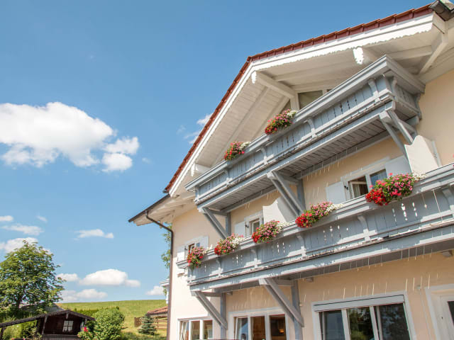 Romantisches, inhabergeführtes Hotel mit Blick auf die Alpen.