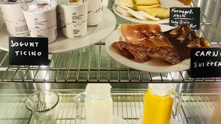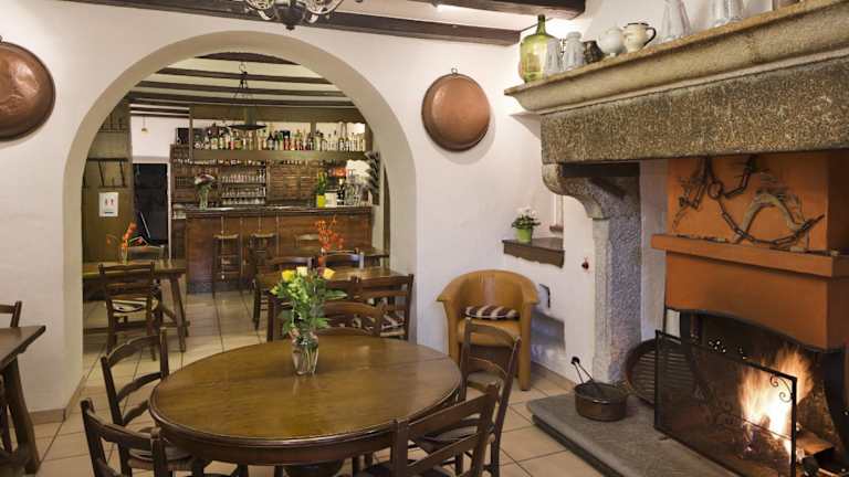 In den Sommermonaten können die Gäste die ruhige Veranda mit Holzdecken und traditionellen Möbeln nutzen, um die Aussicht auf die Alpen und den Lago Maggiore zu genießen. Die Hotelbar verfügt über einen offenen Kamin, der in den kälteren Monaten für eine gemütliche Atmosphäre sorgt. Hier können die Gäste regionale Weine probieren und sich entspannen.