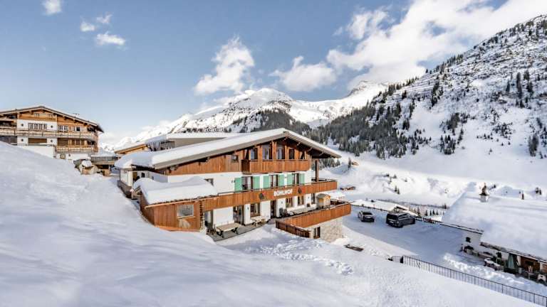 Die Bühlhof Appartements befinden sich auf einem Hügel oberhalb von Lech, umgeben von der herrlichen Natur des Arlbergs. Die Lage bietet eine malerische Aussicht und eine ruhige Atmosphäre, fernab vom Trubel der Stadt. Der Hang direkt vor dem Hotel ermöglicht es den Gästen, direkt zum Hotel zu gelangen und bietet einen einfachen Zugang zu den umliegenden Skigebieten. Das Zentrum von Lech ist nur 500 m entfernt, so dass Sie bequem Geschäfte, Restaurants und andere Einrichtungen erreichen können.
