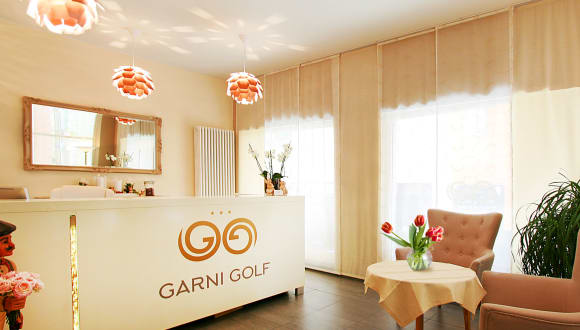 Das Hotel Garni Golf, ein persönlich geführter Familienbetrieb, verfügt über 23 liebevoll eingerichtete Zimmer, 4 gemütliche Apartments im Nebengebäude, einen Frühstücksraum, eine kleine Terrasse zum Innenhof, einen Aufzug und einen Fahrradraum (Hotel-Fahrräder zum Mieten oder als Lagerraum für Ihre eigenen Räder).