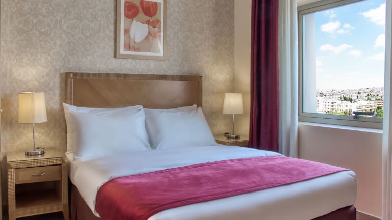 Das Geneva Hotel in Amman ist die ideale Wahl für Reisende, die einen modernen und komfortablen Aufenthalt in der Stadt suchen. Mit klimatisierten Zimmern, einem Außenpool und einem Fitnesscenter bietet das Hotel alles, was Sie für einen angenehmen Aufenthalt benötigen. Genießen Sie internationale Gerichte im Restaurant und entspannen Sie auf der Sonnenterrasse. Die zentrale Lage des Hotels ermöglicht es Ihnen, die Sehenswürdigkeiten und Attraktionen von Amman bequem zu erkunden.