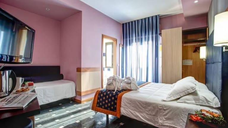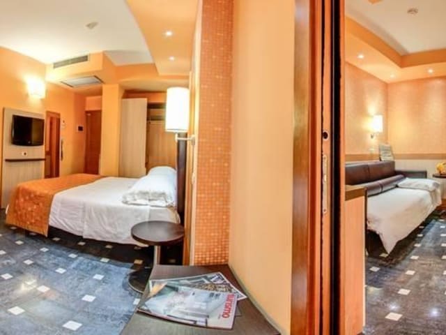 • 47 Zimmern und 4 verschiedene Kategorien • Zimmer "Komfort" : 2009 wurden alle Zimmer neu renoviert. Sie sind ausgestatten mit Balkon, Badezimmer mit Dusche und Fön, Tv-LCD mit 19 Satellitenkanälen, Minisafe, Kühlschrank, Klimaaanlage, freier Internetzugang und Telefon. In dieser Kategorie gibt es auch Verbindungszimmer. • Zimmer "SUPERIOR": Selbe Ausstattung wie "Komfort" nur grössere Zimmerdimension und zusätzlich ausgestattet mit Bademantel, Badeschlappen. Check-out um 11:00 • JUNIOR SUITE: wie Superior, Abendservice, extra Zimmer mit TV-LCD, Hygieneartikel. • FAMILIENZIMMER: wie Komfort mit 2 Zimmern und 2 Bädern, 1 Eingang, Abendservice und TV-LCD