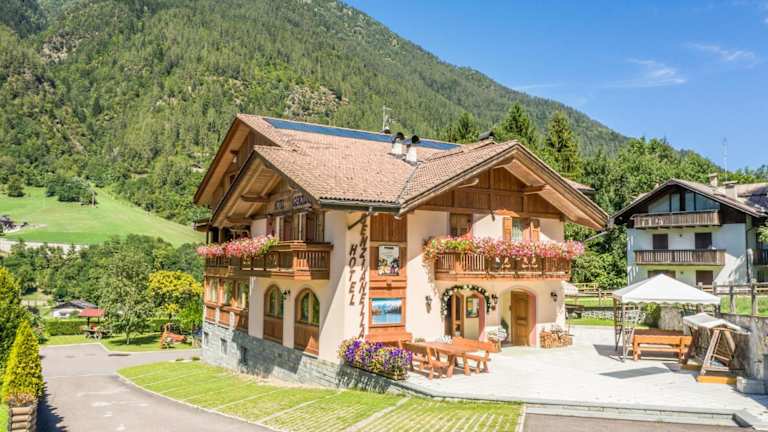 Das Hotel Genzianella befindet sich in Commezzadura im Val di Sole, nur 400 m vom Skigebiet Daolasa entfernt. Die Lage ist ideal für Skifahrer, da ein kostenloser Skibus zur Verfügung steht, der Sie direkt zum Skigebiet bringt. Auch Naturliebhaber kommen hier auf ihre Kosten, da die Umgebung viele Möglichkeiten zum Wandern und Radfahren bietet. Der Regionalbahnhof Daolasa ist nur 400 m entfernt und bietet eine bequeme Anbindung an die Stadt Trient.