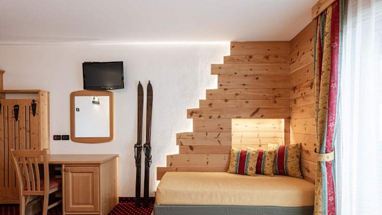 Die Zimmer im Hotel Genzianella sind gemütlich eingerichtet und verfügen über einen Balkon mit herrlichem Bergblick. Das traditionelle alpine Design mit Holzmöbeln und Parkett- oder Teppichböden verleiht den Zimmern eine warme Atmosphäre. Zur Ausstattung gehören Sky-TV und ein eigenes Bad mit Haartrockner und Pflegeprodukten.