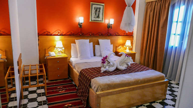 Das El Gezira Garden Hotel in Luxor bietet eine komfortable Unterkunft mit kostenfreiem WLAN und einem erfrischenden Pool. Die Nähe zu den beliebten Sehenswürdigkeiten des Tals der Könige und des Tempels der Hatschepsut macht es zu einer idealen Wahl für Reisende. Genießen Sie die einfache Einrichtung der Zimmer, den Balkon mit Blick auf den Pool oder den Garten und die köstliche ägyptische und internationale Küche im Restaurant auf der Dachterrasse. Entspannen Sie sich nach einem Tag voller Sightseeing bei einer Partie Billard oder einem erfrischenden Bad im Pool.