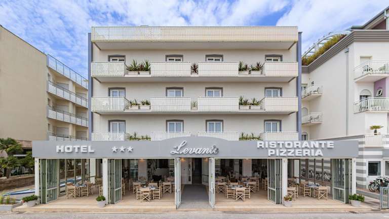 Das Hotel Levante in Caorle bietet einen komfortablen und entspannten Aufenthalt direkt am Strand. Mit seiner Panorama-Sonnenterrasse, dem kostenfreien WLAN und dem Privatstrand ist es der perfekte Ort, um die Adria zu genießen. Die modernen Zimmer sind mit allen Annehmlichkeiten ausgestattet und die meisten bieten einen Balkon mit Blick auf das Meer. Das Restaurant Levante verwöhnt Sie mit mediterraner Küche und das kontinentale Frühstück sorgt für einen guten Start in den Tag. Die Mitarbeiter des Hotels stehen Ihnen gerne zur Seite, um Ihren Aufenthalt so angenehm wie möglich zu gestalten, einschließlich Transfers zum Bahnhof und zum Flughafen.